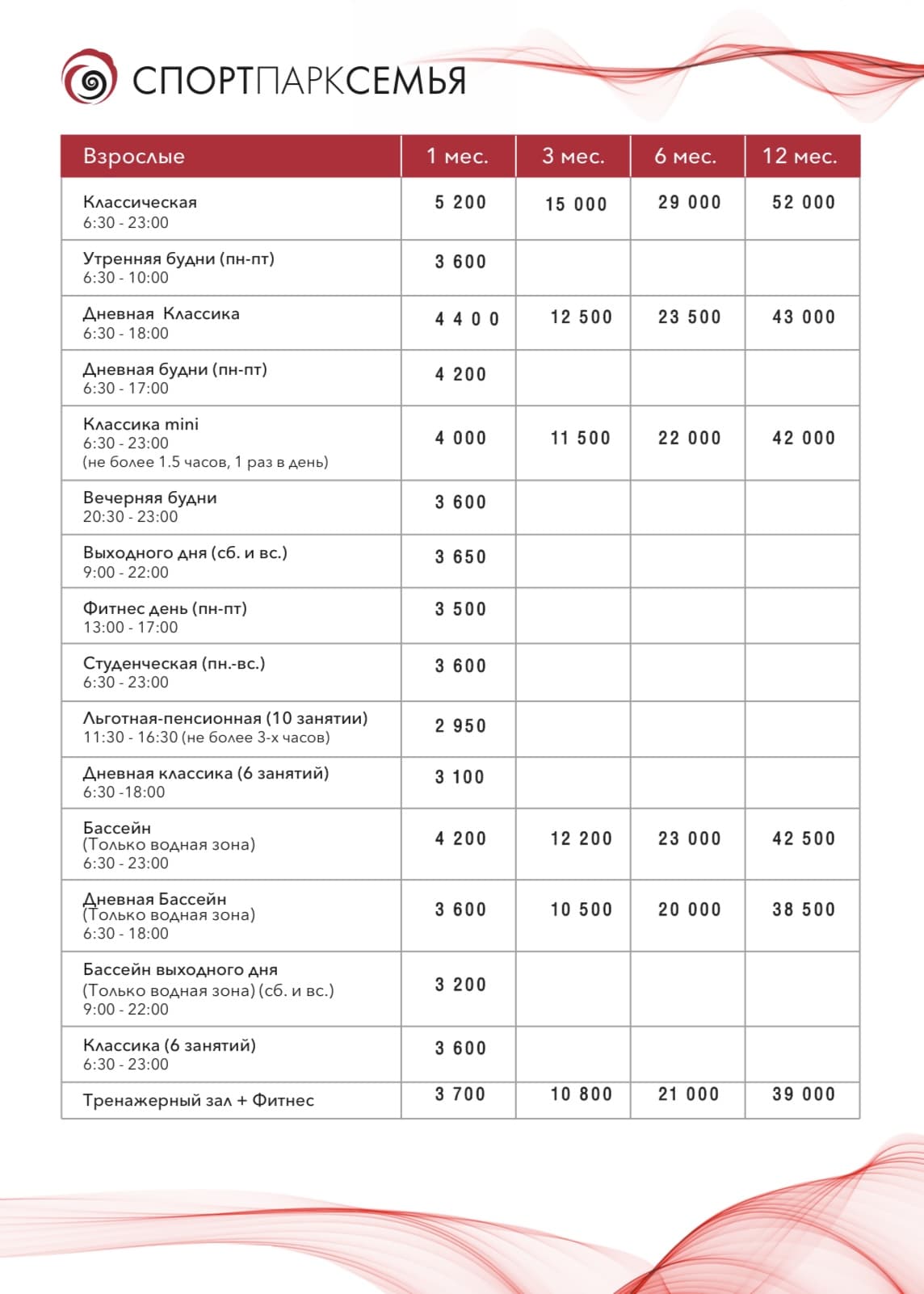 Взрослым - 1100 рублей